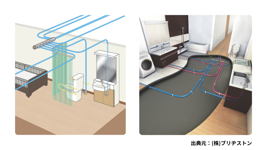 配管というと、鉄の重たいパイプが思い浮かぶと思いますが、特化住宅系設備の分野では樹脂管というとても軽いパイプが使われています。