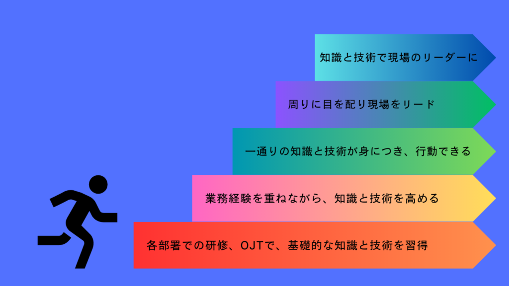 そのために、弊社では給排水衛生設備のプロフェッショナルとしての成長はもちろん、ひとりの人間として成長していくために、段階を経て成長していくキャリアプランを設けています。
